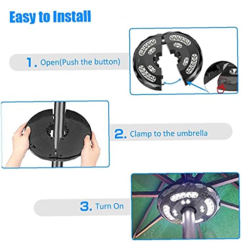 Facile da usare: Patio luci ombrello è facile da installare, senza strumenti aggiuntivi sono necessari, e il costruito nel clip di forte regolabile automatica è facile da morsetto sul ombrello