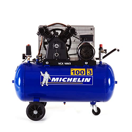 MICHELIN - Compressore d'aria VCX100/3 - Serbatoio da 100 litri - Motore da 3 hp - Pressione massima 10 bar - Portata d'aria 350 l/min - 21 m³/h, blu