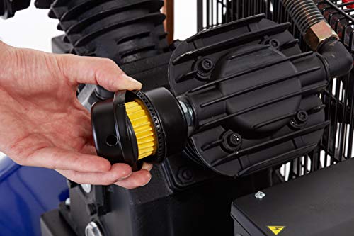 Compressore con un'elevata portata di 350l/min e un serbatoio con una capacità di 100 l ideale per molteplici applicazioni come la pulizia, il gonfiaggio, la verniciatura, la soffiatura o anche la scalpellatura, adatto ai professionisti