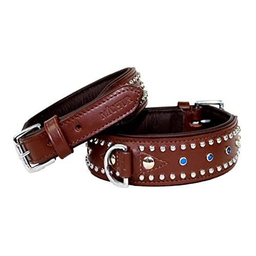 Michur BARTELOME Braun, Collare di Cane, Collare di Cane di Cuoio, Collare di Cane Die Decorazione, Collare, Marrone, Cuoio, Turchese Pietre e Rivetti Rotondi, Disponibile in Varie Misure