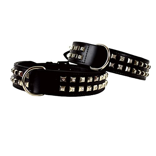 MICHUR BLACKMAN, collari per cani, collari in pelle per cani, Collare di cane con i gioielli, colore nero, cuoio, con il strass, Disponibile in varie misure