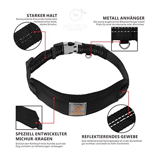 MICHUR Bruno Nero, Collare per Cani in Nylon, Collare per Cani, Foderato in Neoprene, Disponibile in Diverse Misure