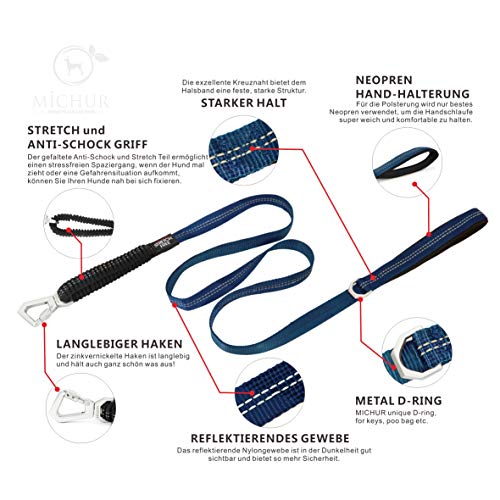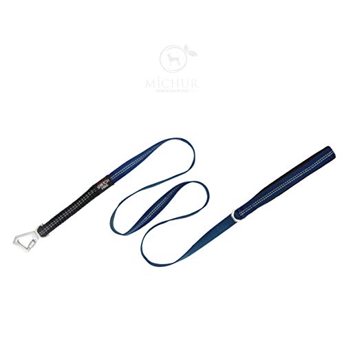 Michur Bruno Guinzaglio in nylon blu per cani guinzaglio in nylon resistente lunghezza 150 cm antiurto elasticizzato riflettente con neoprene