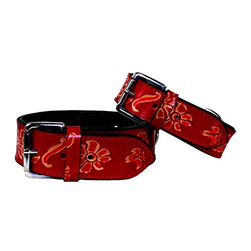 MICHUR CHEYENNE, collari per cani, collari in pelle per cani, Collare di cane con i gioielli, rosso, cuoio, con motivo floreale perforato, Disponibile in varie misure