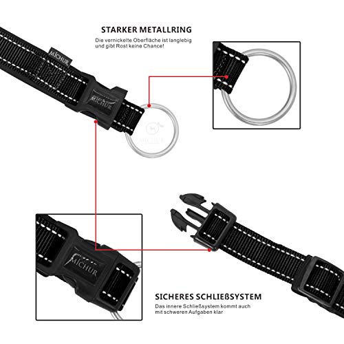 MICHUR Ruben Nero, Collare per Cani in Nylon, Collare per Cani, Foderato in Neoprene, Disponibile in Diverse Misure