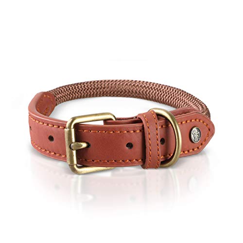 Michur Sherpa Brown Sugar, Dog Collar Rinforzo in Pelle e Rugiada, Tondo con Anima in Poliammide e Nylon Intrecciato, Collare Pelle per Cani in Diverse Misure Disponibili, Collare Cane maremmano.