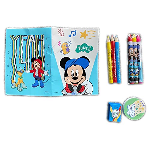 Comprende: 3 colori a matita, 3 pastelli, 1 foglio di adesivi, 1 libro da colorare, 1 gomma e 1 temperamatite.
