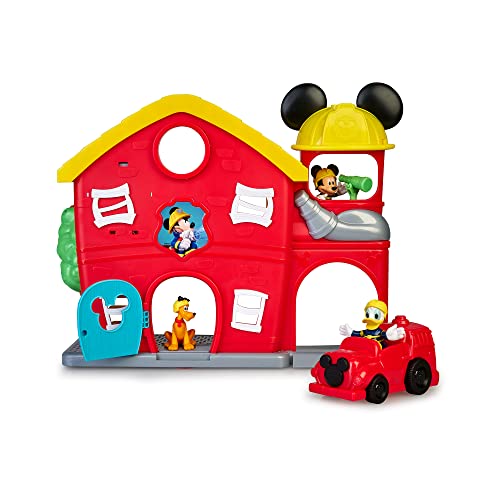 Mickey & Minnie - Caserma dei pompieri Disney, set giocattolo di Topolino e i suoi amici, con personaggi e accessori inclusi, il camion dei pompieri e altri elementi di gioco, Famosa (MCC19000)