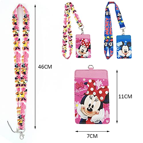 Mickey Minnie Lanyard Ksopsdey Cartoni Animati Cordino ID Holders with Coin Purse Lanyard Mickey Minnie Unisex Adult's Lanyard Porta Tesserino 2 Pezzi (A)