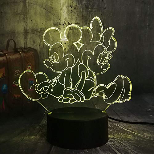 Mickey Mouse-7 Color 3D Illusion Light, Mickey Minnie Paperino, Luce Notturna, Led Stereoscopico, Smart Touch