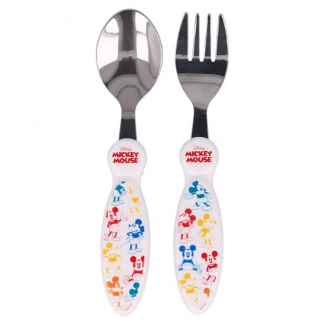 MICKEY MOUSE | Set Posate per Bambini in Acciaio Inossidabile - Forchetta e Cucchiaio (Topolino)
