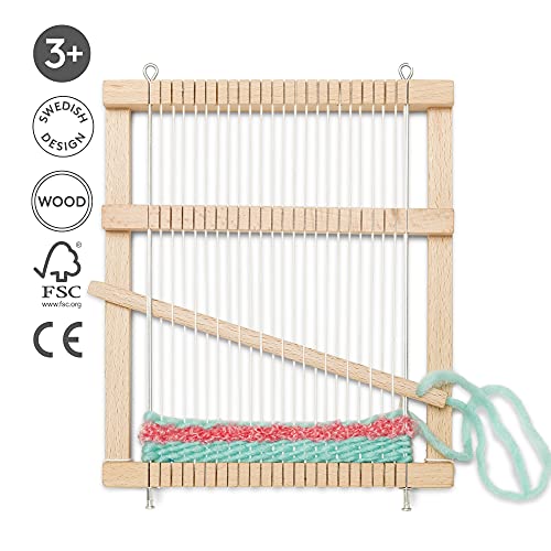 Facile da usare: il nostro telaio per tessitura viene fornito pre-allungato con filato di ordito in modo da poter entrare nel divertimento. Questo set di attrezzi in legno per kds serve come il perfetto kit per maglieria per begginer. Inoltre è dotato di due diversi filati in colori moderni: un filato morbido e spesso e un filato bouclé, ciascuno di 5 metri per poter rifilare facilmente il vostro tessuto.