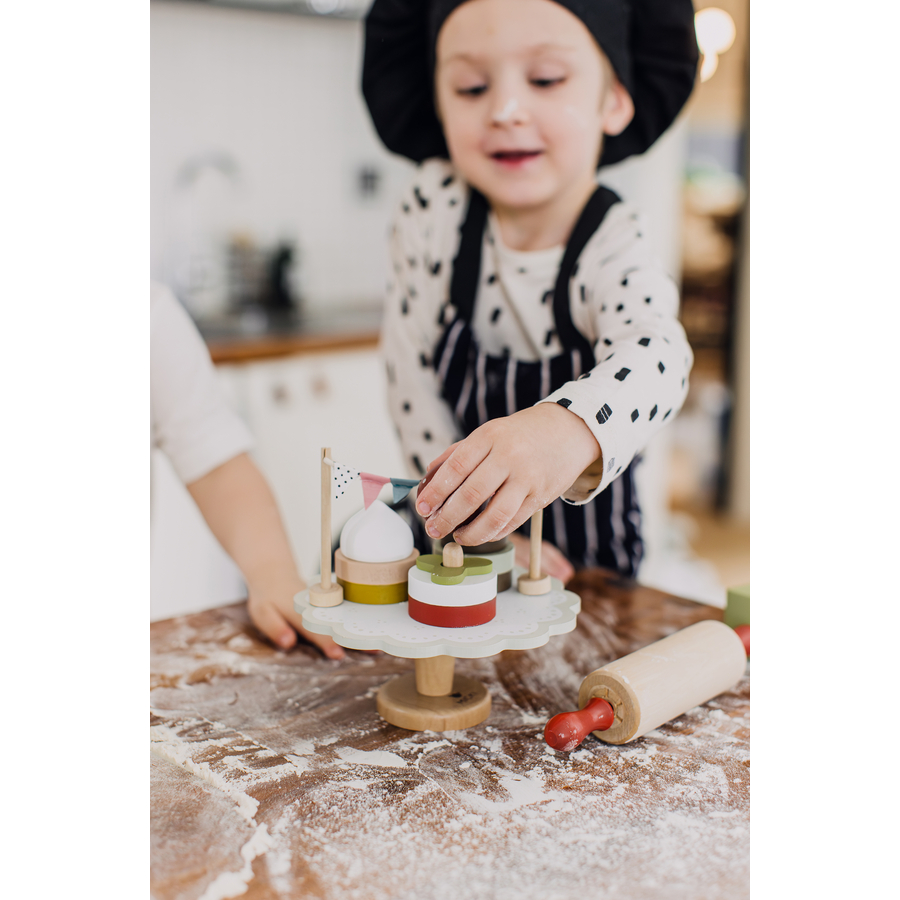 Dettagli del prodotto: Età: da 3 anni Create i vostri cupcake e serviteli su questa bellissima etagere Ogni singolo pasticcino è ornato da decorazioni giocose in colori tenui Tutti i pezzi sono realizzati interamente in legno e possono essere riproposti più volte Dimensioni e peso: Dimensioni assemblate (lunghezza x larghezza x altezza): 17 x 17 x 13,6 cm Materiale e cura: Materiale: Legno Istruzioni per la cura: Pulire con un panno Incluso nella fornitura: 1 x Micki etagere