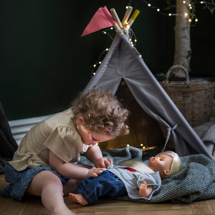 Dettagli del prodotto: Età: da 3 anni Questa tenda da gioco, a forma di piccolo teepee per la vostra bambola o il vostro peluche preferito, crea un angolo più accogliente nella stanza del vostro bambino. Offre alla bambola il suo piccolo nascondiglio che può essere montato e smontato con facilità Dimensioni e peso: Dimensioni da assemblato (lunghezza x larghezza x altezza): 5,3 x 5,3 x 7,5 cm Materiale e cura: Materiale: legno, cotone Istruzioni per la cura: pulire con un panno Incluso nella consegna: 1 x Micki Skrallan Play Teepee Attenzione: la bambola non è inclusa Avvertenze e istruzioni di sicurezza: Attenzione: non adatto a bambini di età inferiore a 36 mesi. Piccole parti. Pericolo di soffocamento! Il montaggio deve essere effettuato da un adulto.