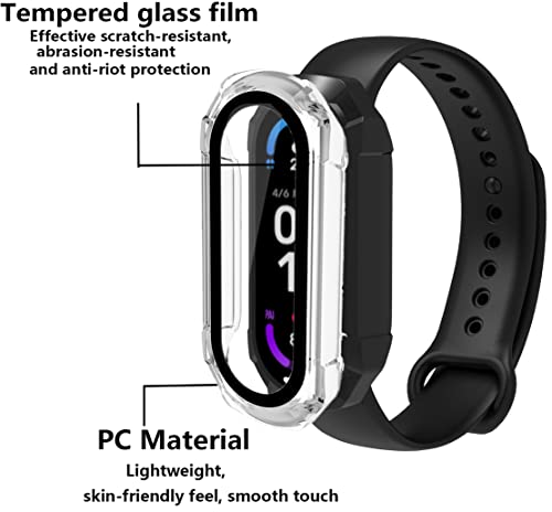 Micnos Custodia compatibile con Xiaomi Mi Smart Band 6/5/4 PC Cover con Protezione in Vetro Temperato, Protezione Totale Ultra Sottile per Custodia Protettiva-Trasparente