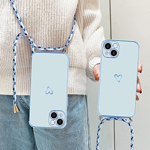 Micoden Cover Cordino per iPhone 14 Plus Amore Cuore Donne Morbido Silicone Ultra Sottile Case con Protezione fotocamera Antiurto AntiGraffio Custodia con Regolabile Collana per iPhone 14 Plus Blu