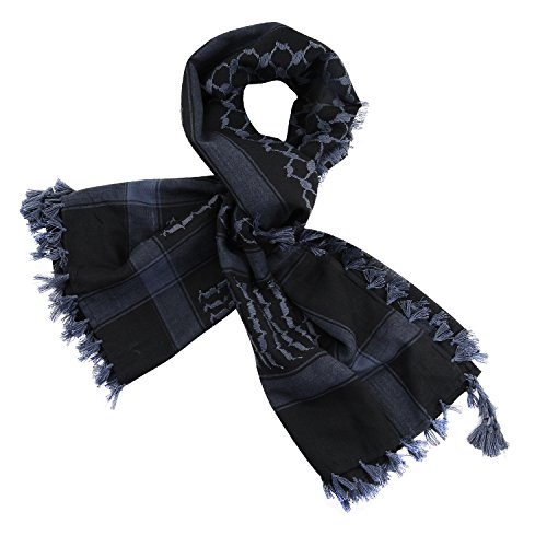 Micoop Sciarpa Shemagh di grandi dimensioni premium araba militare tattico deserto sciarpa avvolgente (122 x 122 cm), Nero e blu scuro., Taglia unica