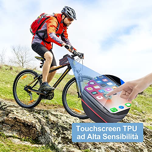 MicQutr Borsa Telaio Bici, Impermeabile Bici Borse Bicicletta Telaio Anteriore Borsa Top Tubo con TPU Touch Screen Visiera Parasole Porta Telefono MTB Borsa Grande capacità per Telefoni sotto 6,7"