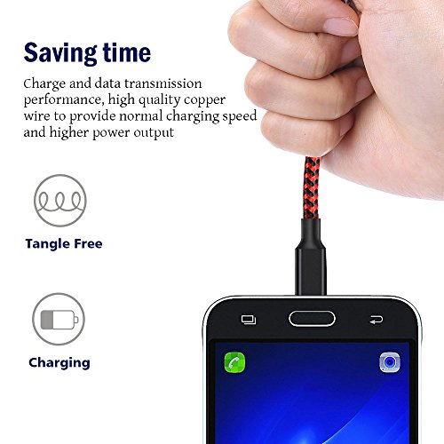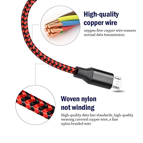 Cavo USB su Micro USB WZS® [ 3-Pezzi 3M ] Nylon Intrecciato Caricabatterie Cavo Cavetto USB a USB Micro Carica Rapida Caricatore per Samsung Galaxy S7 / S7 Edge / S6 / S5 / S4 / S3, Note 5 / 4 / 3,HTC,LG,Sony, Nexus, Blackberry, Nokia, Motorola, Huawei, Kindle,Android Smartphone (Nero e rosso)