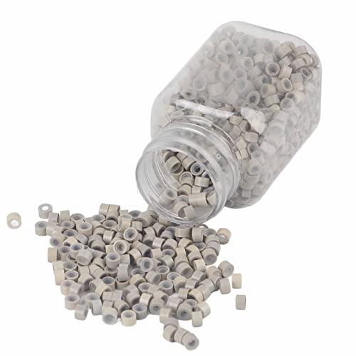 Micro Anelli Rivestiti in Silicone, Perline MicroLink per Estensioni dei Capelli, Anelli di Collegamento per Estensioni di Piume di Capelli 1000PCS Loops Strumenti di Perlin(Beige)