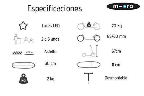 Micro ® Mini Classic LED, monopattino a 3 ruote, 2-5 anni, peso 1,90 kg, carico massimo 50 kg, altezza 68 cm, cuscinetti ABEC9 (Aqua)
