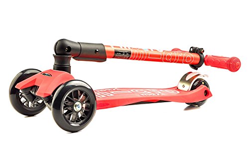 Monopattino per bambini Maxi Micro Deluxe, pieghevole, corallo con pedana in plastica rinforzata in fibra di vetro. Il nuovissimo meccanismo pieghevole assicura che il Maxi Micro possa essere piegato e riposto ovunque e con un semplice gesto.