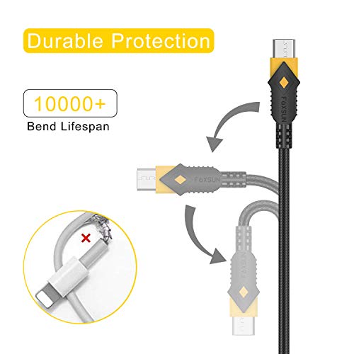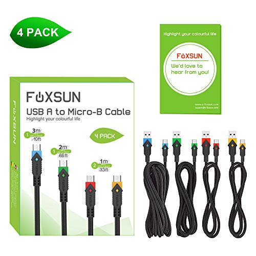 Contenuto della Confezione - Foxsun Cavo Micro USB in Nylon ( 4 pezzi: 3m × 1, 2m × 1, 1m × 2 ), garanzia 18 mesi e assistenza post-vendita.