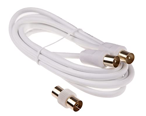 CDL Micro 2 M-Cavo antenna TV placcato in oro (M-M) con adattatore (F-F), colore: bianco