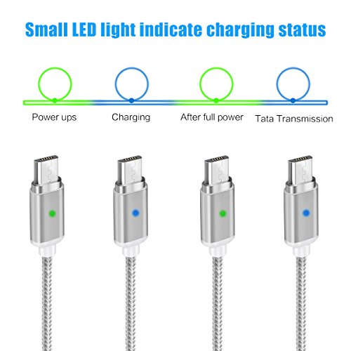 Cavo Micro USB Magnetico, EIVOTOR Carica Rapida 2.0A / 3.9ft, Cavetto USB con Adattatore, Nylon Intrecciato Caricabatterie 1M con Luce LED, Cavo del Caricatore per Samsung / HTC / Sony / Nexus / Nokia / Motorola / Huawei / LG / Android, Argento