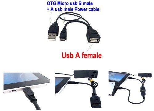 Micro USB B maschio dell'adattatore ospite OTG a USB tipo A cavo femminile + A di potenza USB maschio