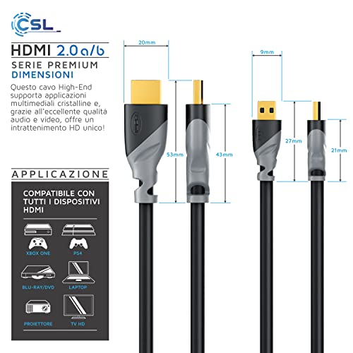 CSL - Cavo Micro HDMI D a HDMI A da 2 Metri - Cavo Placcato in Oro High Speed HQ Micro HDMI 2.0 con Supporto True 3D e Ethernet - Full HD HD Ready 3D - 1080p 2160p 4K Ultra HD
