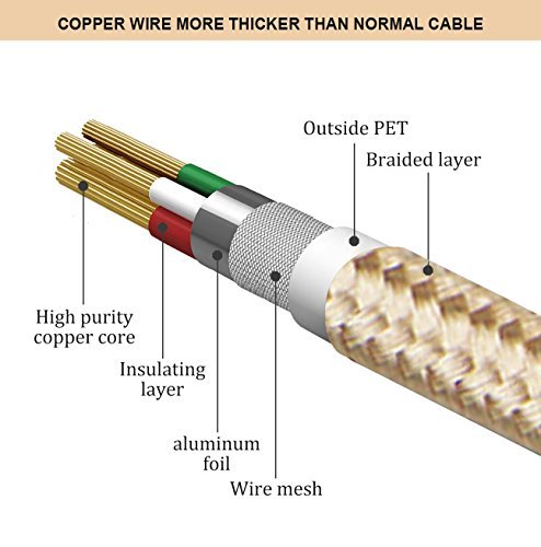 Alta qualità core: ogni cavo ha un nucleo composto da fili di rame puro disposti in 2 gruppi di 21, portando a bassa resistenza e una ricarica più veloce velocità.