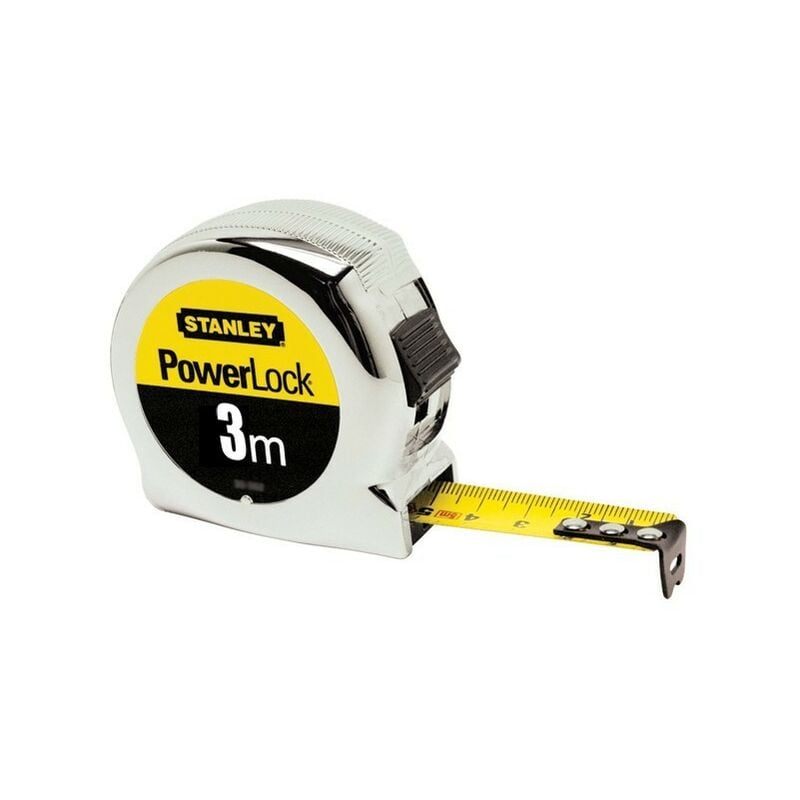 Dettagli: Custodia in ABS cromato Design ultracompatto ed ergonomico per una presa ottimale Pulsante di blocco del nastro 3 gancio per rivetti, scorrevole Clip da cintura per il trasporto Nastro in mylar, rivestimento ad alta protezione su tutto il nastro per una durata 10 volte superiore Caratteristiche: Dimensioni: L.3 m x L.19 mm