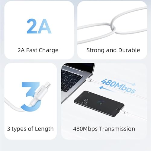 P4Y Cavo micro USB di ricarica e dati US-SJ609 U84 Ricarica veloce 2A Trasferimento dati veloce 480Mbps Materiale PVC, forte e durevole USB Bianco 3m
