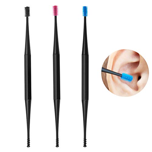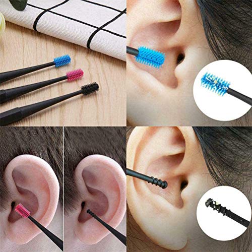 3Pcs Micro-setola Detergente per Orecchie Riutilizzabile Spirale da 360 Gradi Double-End Ear Pick Silicone Ear Curette Ear Stick Strumento per la rimozione del cerume dell'orecchio
