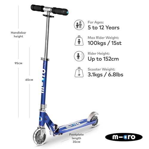 Micro Led Sprite Scooter Blu 2 Ruote Luce Up Ruote Ragazzo Ragazza 5-12 Anni