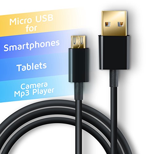 CSL - 1m Cavo Micro USB Standard - Diametro Cavo di 3,5mm - Cavo in Gomma Resistente - Contati Dorati - Varie Lunghezze Disponibili - Nero