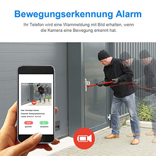 Rilevamento del movimento e visione notturna a infrarossi: quando viene rilevato un movimento, la mini telecamera di sorveglianza NIYPS invia automaticamente un messaggio di allarme con un'immagine al telefono. È necessario inserire una scheda micro SD da 8 - 128 GB (la scheda SD non è inclusa nella confezione, deve essere formattata su FAT32) per consentire il rilevatore di movimento. Visione notturna migliorata con 6 LED a infrarossi funziona molto bene per una visualizzazione chiara in condizioni di scarsa illuminazione. (La luce LED non si illumina durante l'uso).