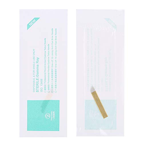 Microblading Needles Set, 50pcs 12/14/19needle Eyeliner Tattooing Microblades Lame per trucco permanente per forniture per microblading(12)