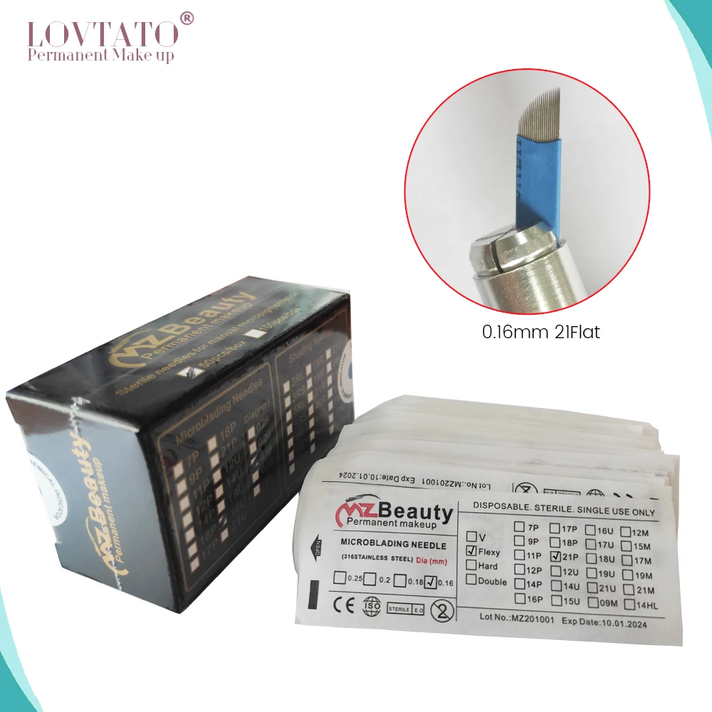0.16MM 21F Microblading Needles Tebori Tattoo Blades 21 Pins For Manual Pen With LOT NO. Exp Date Microblades 21 Flat Agulhas