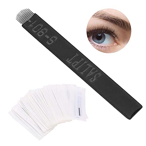 Aghi per microblading, aghi per trucco permanente per sopracciglio manuale 50pcs Micro lama per tatuaggio 7 pin/9 pin/12 pin/12 pin/12 pin/14 pin/14U aghi, kit di microblading(14 U)