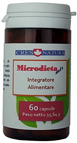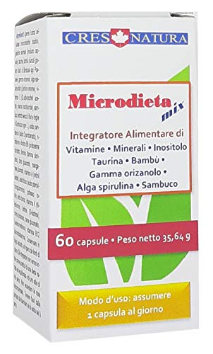Microdieta-mix 60 capsule. 24 micronutrienti. Integratore alimentare di vitamine, minerali, inositolo, taurina, bambù, gamma orizanolo, sambuco. Stanchezza, affaticamento. Prodotto in Italia.