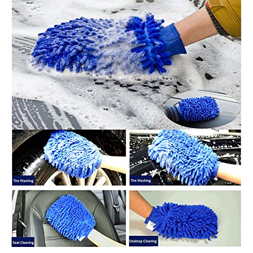 Microfibra lavare mitt-2pack, Easma auto pulizia in microfibra guanto con panno