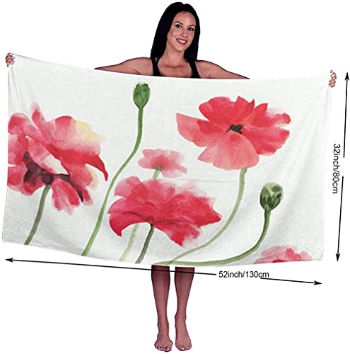 Telo Mare Microfibra,Opere D'Arte Originali,Pittura Ad Acquerello Di Papaveri Rossi Asciugamano Da Spiaggia Leggero,Telo Da Bagno Grande,Perfetto Per Gli Sport Di Fitness,Nuoto,Viaggi In Hotel Per Fa