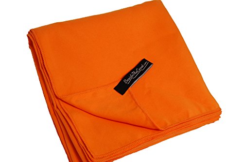 XL Microfibre Towel - 180cm x 80cm with bag - a super absorbent, light and quick drying towel in vibrant orange. Great for the beach, swimming, gym, yoga and sports.