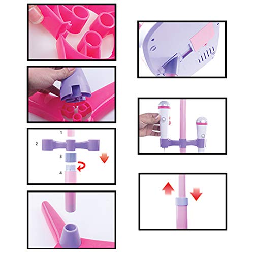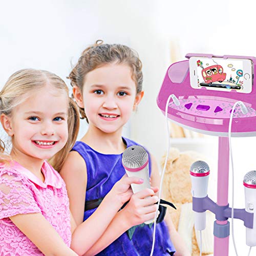 DeAO Microfoni Karaoke Duo per Bambini Set 2 Microfoni con Amplificatore e Supporto, Porta USB Esterna e Luci a LED (Rosa)