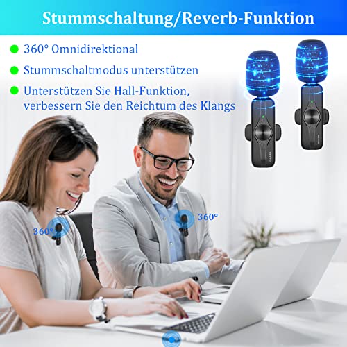 Funzione di riduzione del rumore/silenzio/riverbero: il mini microfono a clip è dotato di un chip di riduzione del rumore, scatti chiari anche in ambienti rumorosi. Lavalier microfono wireless con modalità muto, se non si desidera registrare alcun suono, premere brevemente il pulsante di accensione e spegnimento per attivare la modalità silenzio. Il microfono lavalier wireless supporta la funzione di riverbero, la funzione riverbero migliora la pienezza del suono e si adatta meglio all'ambiente.