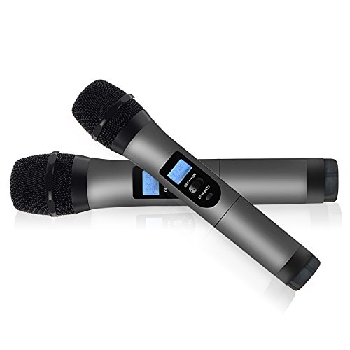 Microfoni Wireless Professionale Doppio Microfono Palmare Mini Set Sistema Microfonico VHF per Registrazione del Suono Sorgente,Matrimonio all'Aperto, Conferenze, Karaoke, Banchetti, Feste, Partito ecc