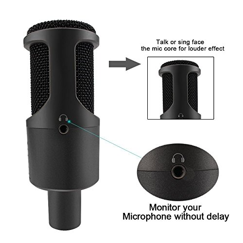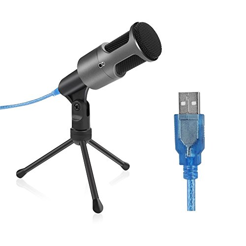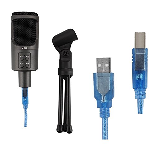 USB Microfono Audio a Condensatore con Supporto da Tavolo Treppiede Pieghevole per Studio di Registrazione Skype Podcasting Live Broadcast Voice Chat Gioco Canto Online Compatibile con PC,Laptop
