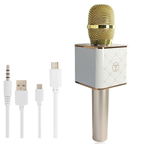 Microfono bluetooth per karaoke con altoparlante, senza fili, colore: dorato.